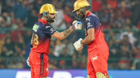 Padikkal continued his charge, racing to a 21-ball half-century – his fastest in the IPL – before falling for 61 – holing out to long-off against Dubey. Kohli, meanwhile, showcased his wrist power with a whip over square leg off Harshal Patel and launching Dubey down the ground for another maximum.