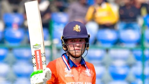 Arun Jaitley Stadium: When Bas de Leede entered the Netherlands bowling attack, Namibia were cruising at 94/2 in 12 overs on a sticky pitch at the Arun Jaitley Stadium. Jan Nicol Loftie-Eaton was at 38 off 33 balls, while captain Gerhard Erasmus looked dangerous in hammering 18 off eight balls – 16 of which came in the previous over off Timm van der Gugten.