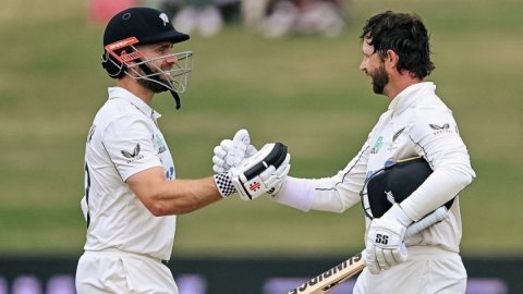 Conway scored a brilliant 227, and with Rachin Ravindra contributing a crucial 72 not out, sharing an unbeaten 39-run partnership for the ninth wicket with recalled spinner Ajaz Patel (30 not out), New Zealand built on their overnight score of 334/1 and declared on 575/8 in their first innings on the Friday morning.