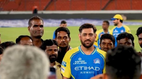 In a video shared by CSK on social media, Dhoni can be seen warmly engaging with the groundsmen, exchanging smiles and posing for photographs, highlighting his humility and appreciation for the often-unsung contributors of the game.