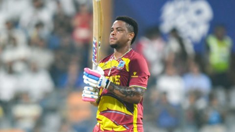 Asked to bat first, Hetmyer reached the milestone in 19 balls, hitting four boundaries and five maximums in the process, improving on his own record for the fastest fifty by a West Indies batter in the ICC Men's T20 World Cup.