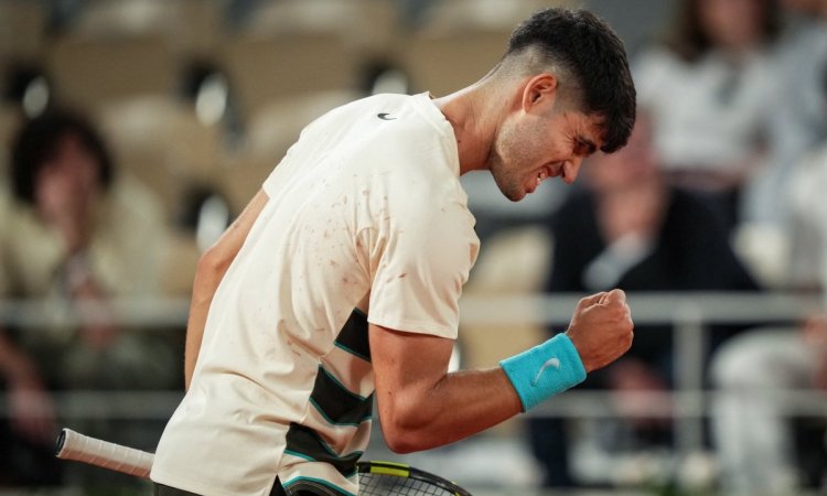 The World No: Carlos Alcaraz survived a late challenge on Friday at Roland Garros to keep his title defense alive. After a commanding start, the Spaniard had to reset his game to overcome Damir Dzumhur 6-1, 6-3, 4-6, 6-4.