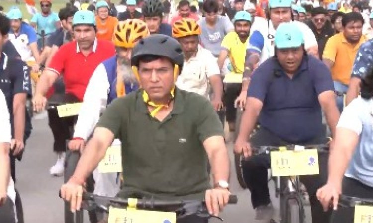 The cycling event, held at the iconic Major Dhyan Chand Stadium, drew the participation of Cabinet Ministers, MPs from the Lok Sabha and Rajya Sabha, and well-known sports personalities.