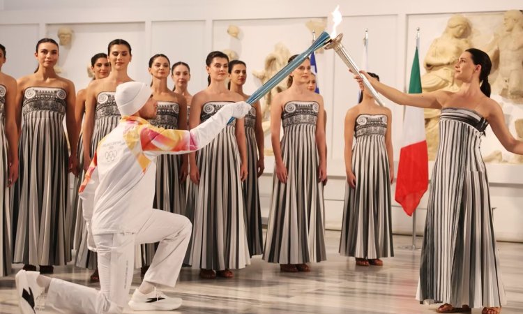Greek Actress Mary Mina: The Olympic flame for the 2026 Milan-Cortina Winter Games was ignited at the birthplace of the Games in Ancient Olympia, in western Greece, on Wednesday. Due to adverse weather conditions, the ceremony was staged inside the Archaeological Museum near the ancient stadium.
