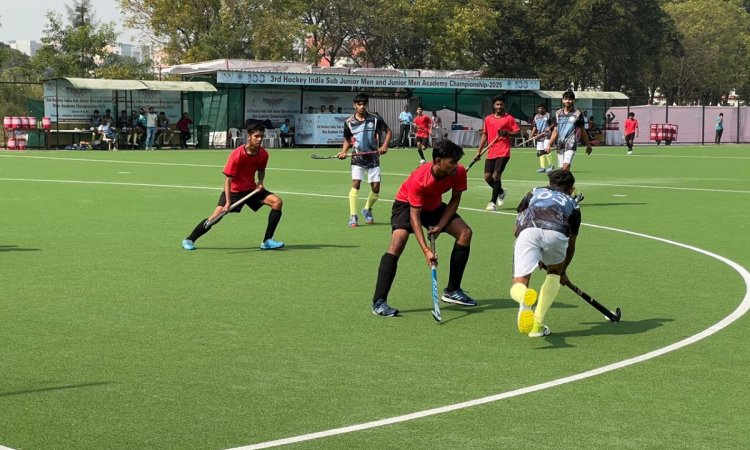 Hockey India Junior Men Academy: Ghumanhera Riser’s Academy, Pritam Siwach Hockey Academy, Sonepat, S.G.P.C Hockey Academy, Sports Authority of Gujarat – Hockey Academy, Namdhari XI, and Roundglass Hockey Academy registered victories on Day 3 of the 3rd Hockey India Junior Men Academy Championship 2025 – Zone A & B in Suraj on Saturday.