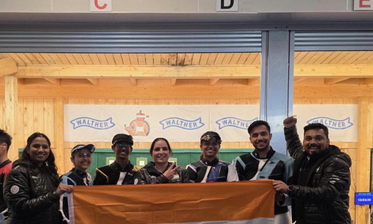 International Shooting Sport Federation: Both Indian teams in the 10m air rifle mixed team event of the International Shooting Sport Federation (ISSF) Junior World Cup in Suhl, won medals, silver and bronze respectively, to land India a second double podium finish in the tournament in two days on Sunday.