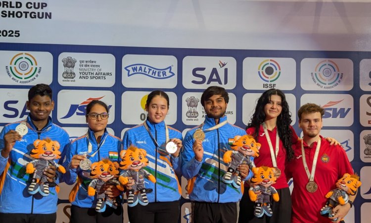 ISSF Junior World Cup Rifle: India pulled off a 1-2 in the 10m air pistol mixed team junior event, as Italy celebrated a golden double in the skeet competitions, as competition Day 3 of the ISSF Junior World Cup Rifle/Pistol/Shotgun New Delhi concluded here at the Dr. Karni Singh Shooting Range with the hosts still on top of the medal tally.