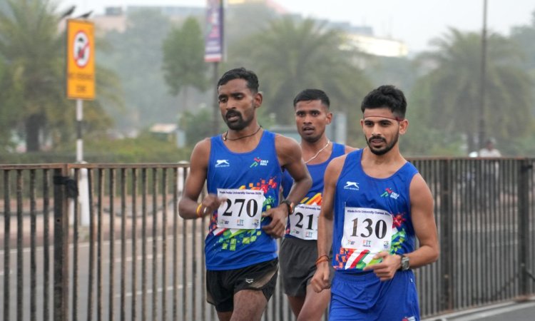 In the morning session, Rahul led the 20km Race Walk from start to end to stop the clock at 1:25:43.00s, improving on the previous record of 1:26:44.00 set by Akshdeep Singh of Punjabi University back in 2022. Suraj Yadav of Jannayak Chandrashekhar University took silver with a time of 1:30.06.50s, while the other two competitors were disqualified.