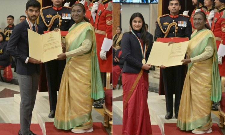 Major Dhyan Chand Khel Ratna: World Chess champion Gukesh D and Paris Olympics and Paralympics medallists - Manu Bhaker (shooting), Harmanpreet Singh (hockey) and Praveen Kumar (para-athlete) received the prestigious Major Dhyan Chand Khel Ratna Award from President Droupadi Murmu in a specially organised function at Rashtrapati Bhavan on Friday.