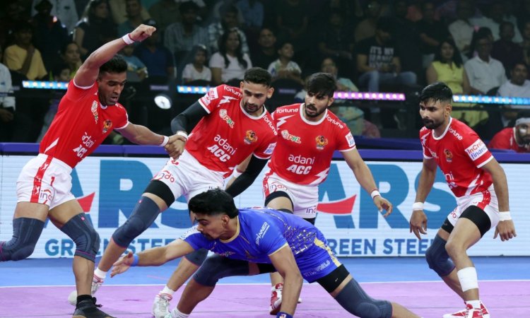 Pro Kabaddi League Season: Nitin Panwar’s High Five, alongside Rakesh and Mohammadreza Shadloui’s six points each, led to an impressive defensive performance from the Gujarat Giants, who sealed their first win of the Pro Kabaddi League Season 12, beating Tamil Thalaivas 37-28 in Season 12 of the Pro Kabaddi League (PKL) 2025 at the Vishwanadh Sports Club here on Saturday night