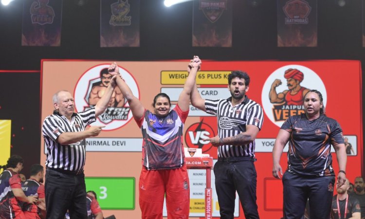 Pro Panja League Independence Day: Nirmal Devi of Rohtak Rowdies showcased resounding "Women Power" and in a compelling main card fixture within the 65kg+ participation category got the better of her mentor Yogesh Chaudhary of Jaipur Veers with a hard-fought 3-1 score in Season 2 of Pro Panja League here on Friday.